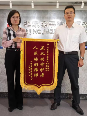 当事人给贾素飞律师敬赠锦旗“弘扬正气,仗义执言。服务优质,司法为民!”