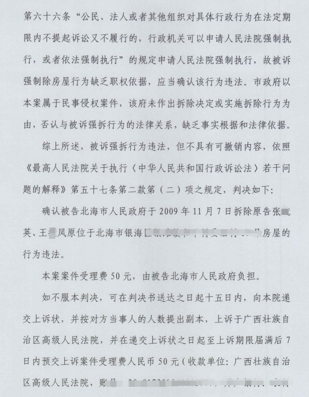广西北海房屋拆迁纠纷案例:因拆迁补偿未达成合法房屋遭强拆,律师维权市政府行为违法案件
