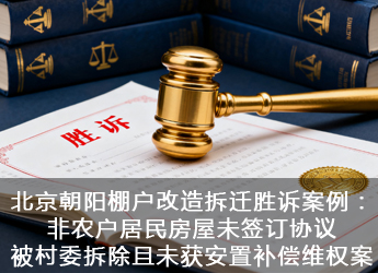 用精湛的专业水平维护客户的合法权益推动中国依法行政的进程。北京朝阳棚户改造拆迁胜诉案例:非农户居民房屋未签订协议被村委拆除且未获安置补偿维权案件 【原告】王某林 【代理律师】傅增...