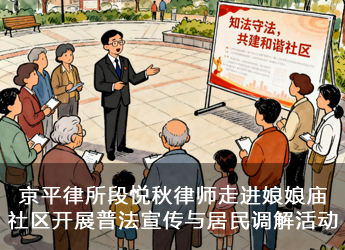 京平律所段悦秋律师走进娘娘庙社区开展普法宣传与居民调解活动2025年7月30日,京平律师事务所的段悦秋律师来到北下关街道...