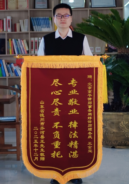 山东王先生为北京京平律所【顾冬庆】律师、【王金宝】律师,敬赠锦旗京平律师全国办案,一直在路上