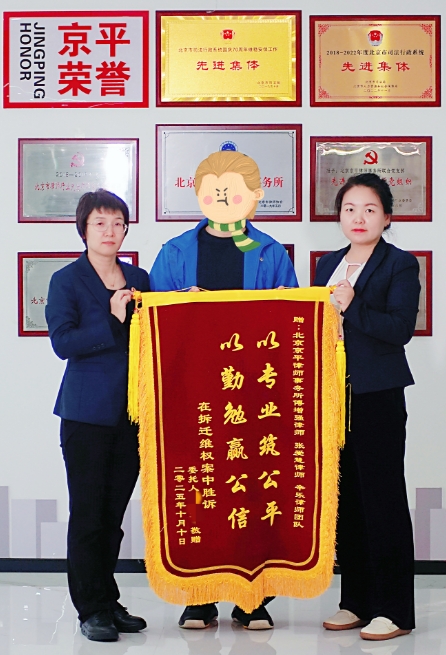 北京吴先生为京平律所【傅增强】律师、【张爱慧】律师、【辛乐】律师敬赠锦旗