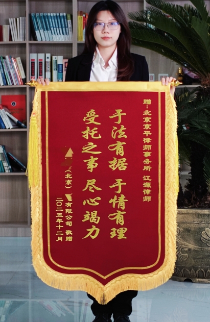 北京某企业为京平律所【江源】律师,敬赠锦旗京平律师