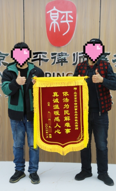山东当事人孔先生、刘先生 为【李敏杰】律师敬赠锦旗