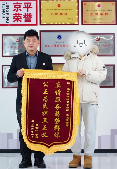 京平律师,收到锦旗了!北京郝女士为【李定寰】律师敬赠锦旗!京平律师,全国办案,一直在路上