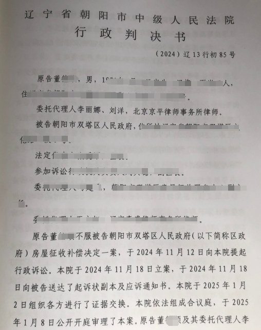 董某某因不服朝阳市双塔区人民政府作出的房屋征收补偿决定,在面临补偿不合理、自身权益受损的困境下,经多方了解与咨询,听闻北京京平律师事务所专注于中华人民共和国行政诉讼法》第七十条第一、二项规定,判决撤销被告作出的11号《征收补偿决定》,责令朝阳市双塔区人民政府于判决生效之日起六十日内重新作出征收补偿决定;案件受理费50元由被告负担。